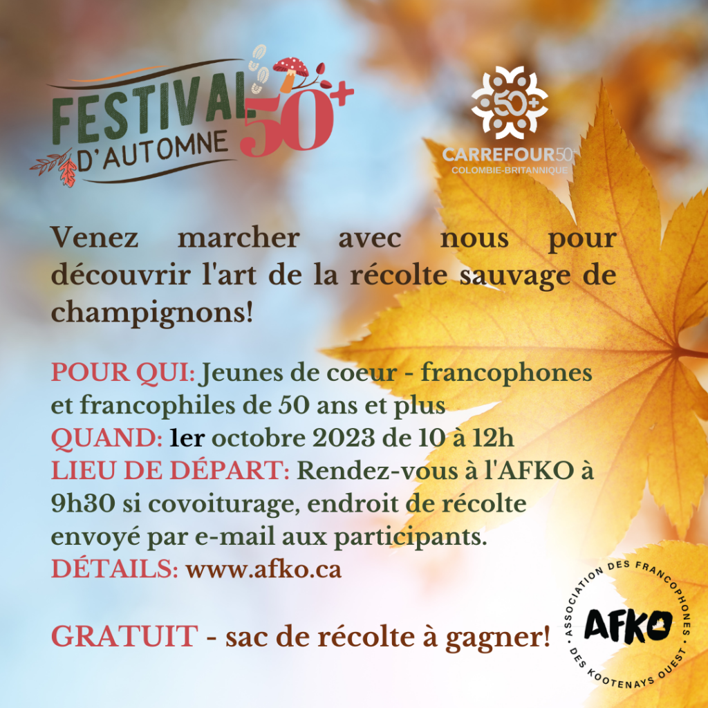 Grâce au fond du Carrefour 50+, l’AFKO organise une séance de récolte de champignons sauvages le 1er octobre.