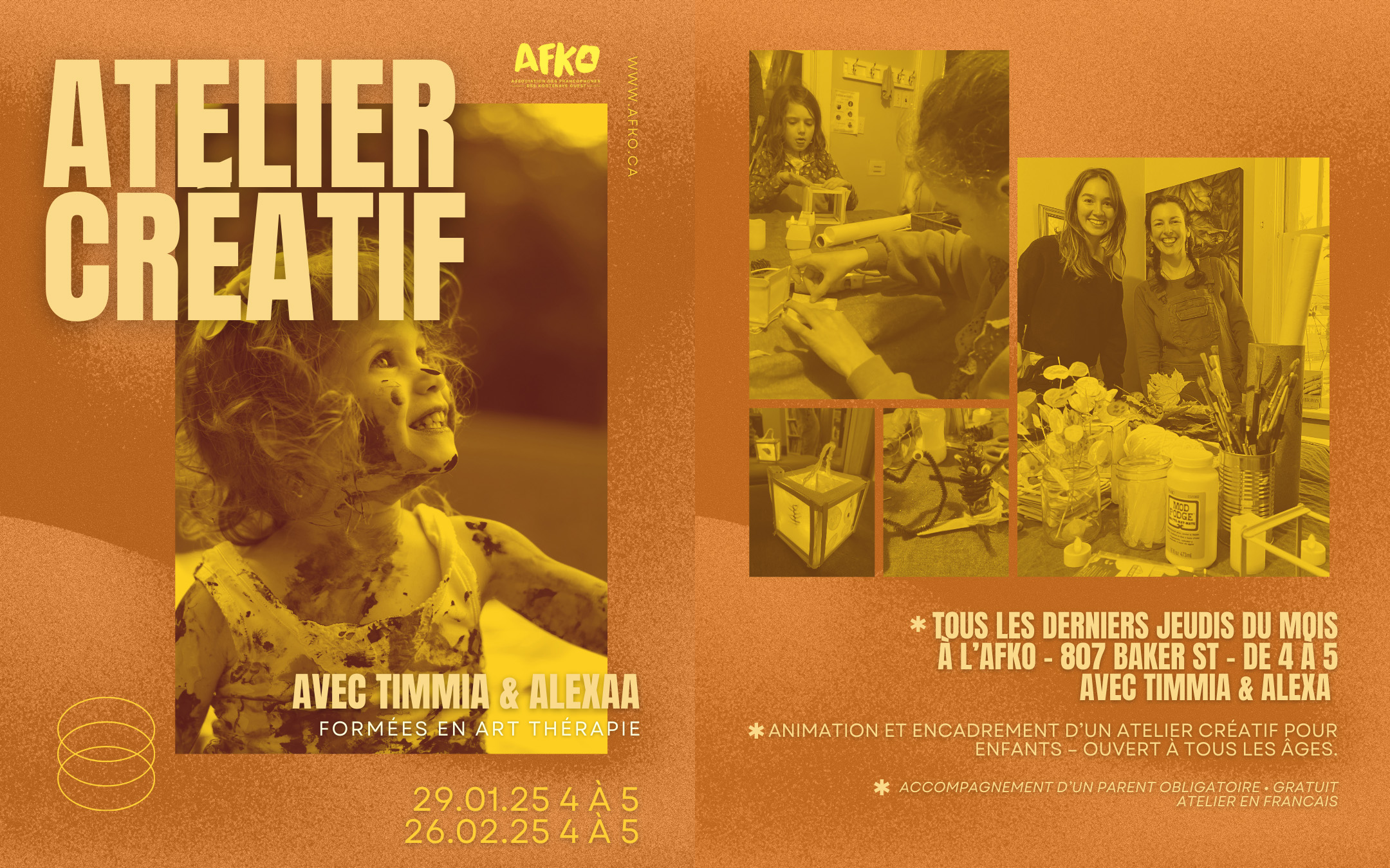 On est bluffés d’accueillir Timmia et Alexa, deux étudiantes en 2ᵉ année d’art-thérapie à Nelson Kutenai Art Therapy, qui animent avec énergie nos ateliers à l’AFKO!